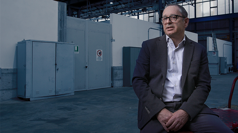 Un ricercatore che lavora nei laboratori allestiti nel sito di Vado Ligure presenta il suo lavoro e ne spiega il potenziale per la sostenibilità futura nella produzione di energia elettrica. Il laboratorio è a sua volta una sperimentazione riuscita a vantaggio sia di Tirreno Power che dell’Università di Genova.